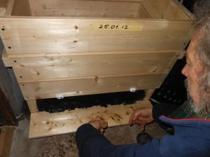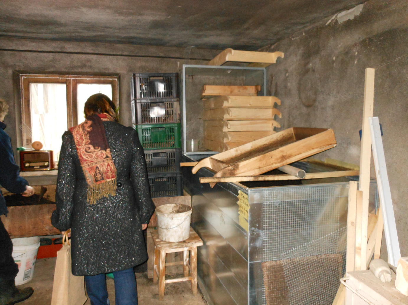 Un kur tad sliekas? Iegājām pamatīgas kūts daļā. Tur mūs apņēma mājīgs siltums, un it kā sēņu smarža. Uz plauktiem viena uz otras sarindotas koka kastes un no tām redzam sliekas karājamies ārā, tiekdamies uz nākamo darba lauku. Kārtība, organizētība, precizitāte novērojama visā šinī telpā. Pa vienu galu ienāk mēsli, pa otru galu iznāk smaržīga zeme. Dzīvība pati ražo dzīvību, tam nevajag mehanizāciju!