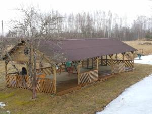 Ko vien tikai pie viņiem neieraudzījām! Klētiņā uzglabājies vesels lauku antikvariāts, , pļavā plaša pajumte saietiem, zem tās var justies labi pat lietainā laikā. Pie dīķa liela pirts ar mūzikas telpu bēniņos! Un pirts siena pat apgleznota, ar strautu kas tek no kalna!